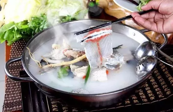 鴻緣山莊斑魚都是當(dāng)天進(jìn)貨,現(xiàn)點(diǎn)現(xiàn)殺的活斑魚。魚頭魚尾拿來(lái)清燉熬湯,湯底里除了清水和魚骨魚頭魚尾魚肉之外無(wú)任何添加,湯白味鮮。