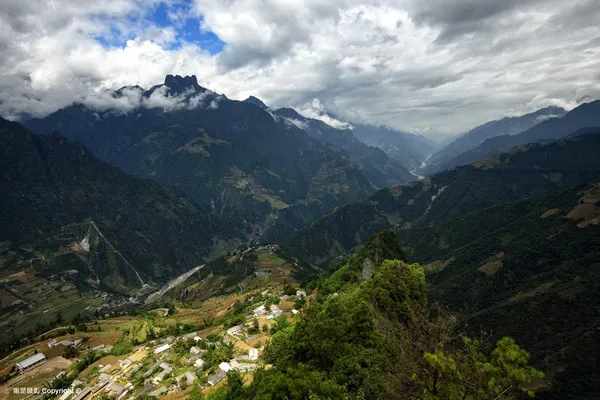 西藏察隅縣察瓦龍鄉(xiāng)全景 穿越貧瘠的干熱河谷時(shí),給我印象最深的是那些“爬在懸崖上的村莊”。當(dāng)?shù)厝顺浞掷脥{谷峭壁上一塊突出的臺(tái)地建房而居,從遠(yuǎn)處望去,荒涼的山崖上斜掛著幾幢別致的藏居和一小片農(nóng)田,實(shí)在讓人擔(dān)心那么小的一塊臺(tái)地是否抵抗得了自然災(zāi)害。從松塔村進(jìn)入干熱河谷后,在怒江峽谷松塔村進(jìn)入干熱河谷后,在怒江峽谷兩岸,這樣的村落不斷出現(xiàn)在眼前,其中崗藏村給我視覺(jué)震撼最大。崗藏村遠(yuǎn)離察瓦龍鄉(xiāng),孤單的“爬”在峭壁上,只有一條可以勉強(qiáng)通行拖拉機(jī)的小路。村莊建在一個(gè)近300米長(zhǎng)的坡上,而縱深不過(guò)100米,旁邊就是怒江峽谷。但就在這樣一小塊地上,僅種植青稞和玉米就養(yǎng)活了25戶人家120余人。