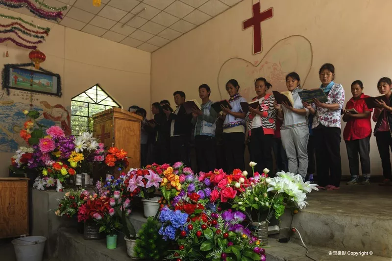 打拉村金囯洪全家照 除了不同民族間的和睦相處,這里信仰也非常自由,藏傳佛教、基督教、天主教和原始苯教共同存在。歷史上的丙中洛曾是藏傳佛教主導(dǎo)的地方,藏傳佛教與外來(lái)宗教的矛盾突出,先后發(fā)生過(guò)1865年秋拉桶村的呂項(xiàng)神父被佛教徒開(kāi)槍打死的事件和1905年的“維西教難”,后來(lái)清政府的安撫和賠償為藏傳佛教與外來(lái)宗教的和平共處奠定了基礎(chǔ)。今天丙中洛盡管民族多樣,但在宗教信仰的選擇上完全自由。 位于丙中洛東風(fēng)村的普化寺,是整個(gè)怒江傈僳族自治州唯一的一座藏傳佛教寺院。住持江德喇嘛告訴我,普化寺在丙中洛有很高的威望,每天都有當(dāng)?shù)厝撕团苓叺貐^(qū)的信眾前來(lái)轉(zhuǎn)經(jīng)朝拜,其中很多人是漢族、怒族、傈僳族等其他民族。8月31日這天是丙中洛基督教和天主教的禮拜日,我在丙中村的基督教堂看到認(rèn)真合唱的信徒,在重丁村的天主教堂看到帶著孩童做禮拜的人們,這些畫面都讓我深刻感受到宗教信仰在當(dāng)?shù)卮?a href='/minsheng/' target=_blank>民生活中的根深蒂固。