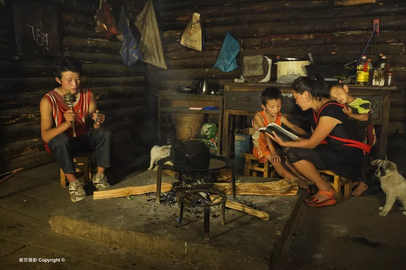 云南怒江州貢山縣丙中洛鎮(zhèn) 丙中洛居住著藏、漢、怒、傈僳等多個(gè)民族,民風(fēng)淳樸,這里的人似乎沒(méi)有民族的概念,雖然不同民族有語(yǔ)言和文化上的差異,但他們之間互相通婚,生活和睦平靜。丙中洛打拉村的金國(guó)洪一家就是不同民族和睦相處的家庭。金國(guó)洪是打拉村的怒族,妻子蔣扼是從獨(dú)龍江嫁來(lái)的獨(dú)龍族,78歲的岳母也隨女兒來(lái)到打拉村,她是保持著原始崇拜的紋面女。一家人在一起生活的十多年中從未發(fā)生過(guò)一次口角,金國(guó)洪非常孝敬老人,學(xué)會(huì)了講獨(dú)龍?jiān)?,制作?dú)龍服飾,妻子和岳母也學(xué)會(huì)了怒族話,家里的三個(gè)孩子也都會(huì)講兩種語(yǔ)言。