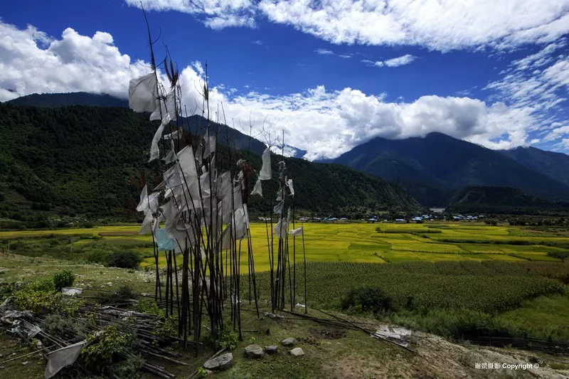 下察隅鄰近非法的“麥克馬洪線”,邊防管理嚴(yán)格,游人被限制在下察隅鎮(zhèn)附近活動(dòng)。這次走近察隅河南端是第一次,沒(méi)想到這邊的風(fēng)情是這么的美妙,青翠的大山中央是寬闊的察隅河谷,平坦的壩子和臺(tái)地上層層金黃的稻田,予人富饒美麗的第一印象。據(jù)史料記載,這一帶最早的居民叫“炯”,在“炯”人首領(lǐng)司那熱布顛的帶領(lǐng)下,開(kāi)荒種地,打獵和種水稻。后來(lái)“炯”人與藏族發(fā)生爭(zhēng)戰(zhàn)失敗而逃到南方山區(qū)?!熬肌比诉w走后,由“雜”和“吉”兩個(gè)群落的藏族來(lái)在這里定居。“雜”是講土話的藏族,與其他藏族有語(yǔ)言上的很大差異,被稱作“雜隅娃”,意即“雜”群落居住地方的人。在這個(gè)區(qū)域里的沙馬、拉丁、松古等村就是至今保持著講土話的藏族。尋著這個(gè)線索,我們到了松古村、沙馬村去感受他們的生活。松古和沙馬兩個(gè)村約有200戶600余人,都座落在河谷臺(tái)地上,背靠茂密的青山,遠(yuǎn)眺察隅河谷,四周被大片的梯田水稻包圍著,一片田園農(nóng)耕景象。由于海拔只有1500米左右,又受孟加拉灣熱氣流影響大,氣候炎熱濕潤(rùn),老年婦人多穿民族傳統(tǒng)的短擺裙裝,而年輕人多著單薄時(shí)尚的常裝。語(yǔ)言上保持著自己特有的土話,其他沒(méi)有更多差別。新農(nóng)村建設(shè)后,吊腳樓與門前長(zhǎng)廊風(fēng)格的新民居寬敞明亮,水電防火等設(shè)施齊全,狹窄的老木樓雖還存在,但多為儲(chǔ)雜物或養(yǎng)畜之用,新老木樓之間對(duì)比強(qiáng)烈。院落前后和村道兩側(cè)生長(zhǎng)著柿子、梨桃、柑桔和花椒,地里也長(zhǎng)滿了蔬菜、花生、辣椒,顯出一方物產(chǎn)的豐富。這里的人或許傳承著先古“雜”人沒(méi)有階級(jí)劃分的傳統(tǒng),勤勞樸實(shí),團(tuán)結(jié)互助,熱情好客。中秋打扁谷是團(tuán)結(jié)互助最好的展現(xiàn),這里出產(chǎn)一種叫扁谷的香米,有降脂保健作用,一般摻入酥油茶中食用。每年中秋節(jié)都是采摘舂米的時(shí)候,而舂米不是個(gè)體行為而是集體勞動(dòng),各戶將從稻田里采摘來(lái)的扁谷統(tǒng)一拿到舂米房,一邊烤香一邊舂制。全村人像過(guò)節(jié)一樣全部匯聚在一起輪番上陣,只有歡笑沒(méi)有偷懶也沒(méi)有你多我少。最后各家拿著舂制好了的扁谷高高興興回家。這里的人們?cè)缫呀Y(jié)束貧困的日子,盛產(chǎn)谷物,優(yōu)良的多類種植條件,本己富足有余,每年還享受政府幾萬(wàn)元的各種農(nóng)村補(bǔ)貼,日子過(guò)得舒舒服服。這里的人們沒(méi)有信仰佛教的傳統(tǒng),除了農(nóng)忙的時(shí)候,基本上就是在喝米酒,看電視,唱歌跳舞中度過(guò)。松古村村長(zhǎng)四娜美朵樸實(shí)的語(yǔ)言說(shuō),我們的信仰就是毛主席和共產(chǎn)黨。