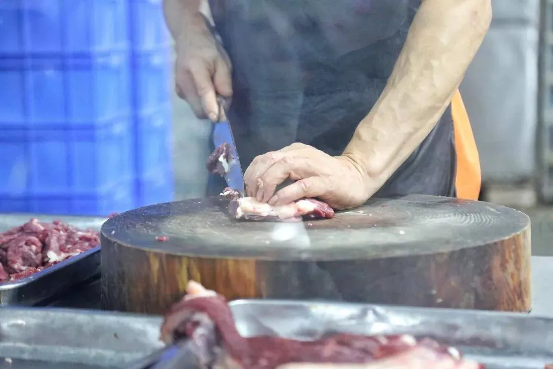隨著師傅手起刀落,一碟碟新鮮的牛肉就上桌啦!牛肉新鮮的程度有多夸張?嗯~就是上桌了還會(huì)動(dòng)的那種!