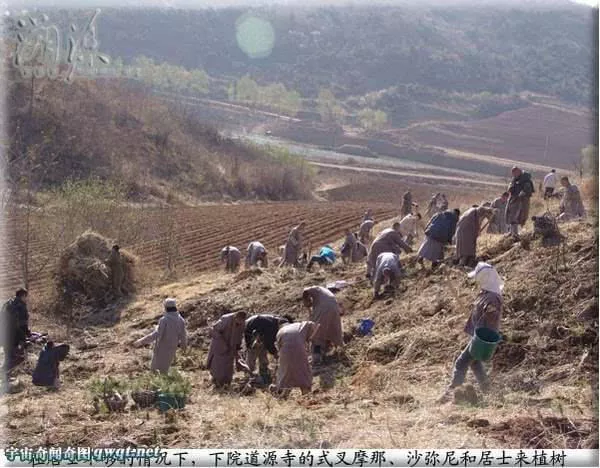 植樹造林 零九年春,居士供養(yǎng)了近兩萬棵樹苗。有的是抗旱耐寒樹種,很適合種在水庫對面寺院承包的荒山上。各地居士聞訊后,紛紛自發(fā)組織起來到寺院栽樹。近一點(diǎn)的居士有海城的、沈陽的、大石橋的,遠(yuǎn)一點(diǎn)的有本溪的、遼陽的,更遠(yuǎn)的有秦皇島的居士等。