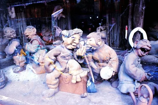 劉老根廣場里的陶俑制品 東北人物形象