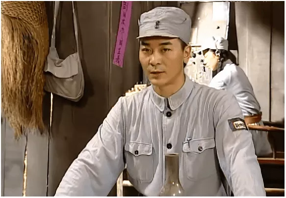 吳扮演的蔡水根在受領(lǐng)任務(wù)時(shí),也是身穿新四軍的軍裝,盡管軍裝是粗布制造,但是軍裝非常的嚴(yán)整,左胸袋上的鋼筆別的也是一絲不茍,看上去就有革命軍人的范兒!