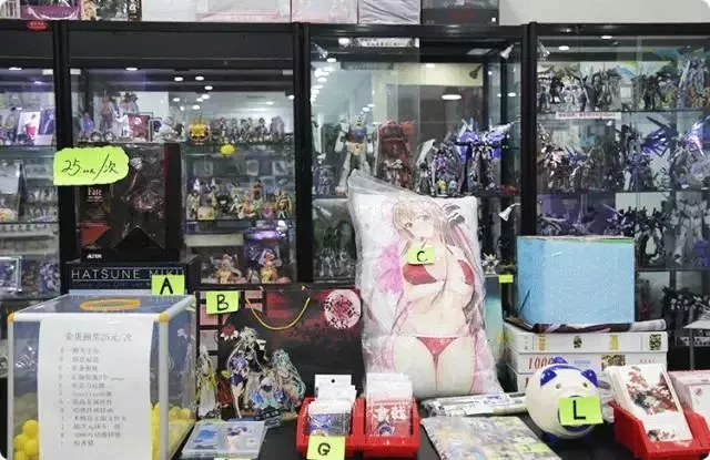 老板是個年輕人,一進(jìn)店就熱情地給我們介紹起各種商品,游戲、手辦、海報、布偶、漫畫、服裝,還有扭蛋機(jī),所有和二次元有關(guān)的玩意兒應(yīng)有盡有。