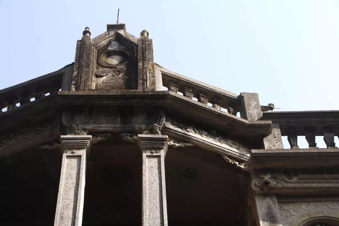 楓亭糕飄香的學(xué)士街上,有一棟被稱為廣源別墅的三開間三層大厝,外觀宏偉大氣,洗石子巴洛克風(fēng)格立面上飾以中國傳統(tǒng)卷書、八角窗,體現(xiàn)出幾何美和典雅美。從廣源別墅的北面往南看,別墅三層墻面色澤鮮明,曲線平滑的閩南式"桃彎規(guī)"山墻上,貼以繁復(fù)的螭龍泥塑裝飾,顯示出別樣風(fēng)采。大厝歷經(jīng)百年風(fēng)霜,風(fēng)采不減當(dāng)年。深入屋內(nèi),精細的"紅毛灰"(水泥)泥塑、馬約里卡瓷磚壁肚裝飾極盡華麗。在閩南,這種大厝被稱為"番仔厝",屬于中西折衷風(fēng)格建筑,百年前流行于廈泉地區(qū)。廣源別墅是廣源商號創(chuàng)辦人修建的,其早期在上海、寧波等地經(jīng)營桂圓發(fā)家,建造房子時從廈門買來圖紙,聘請惠安工匠施工,歷時多年而成。廣源別墅是一棟建在異地的閩南風(fēng)格建筑,同時它也見證了楓亭近代商貿(mào)發(fā)達和活躍的文化交流。