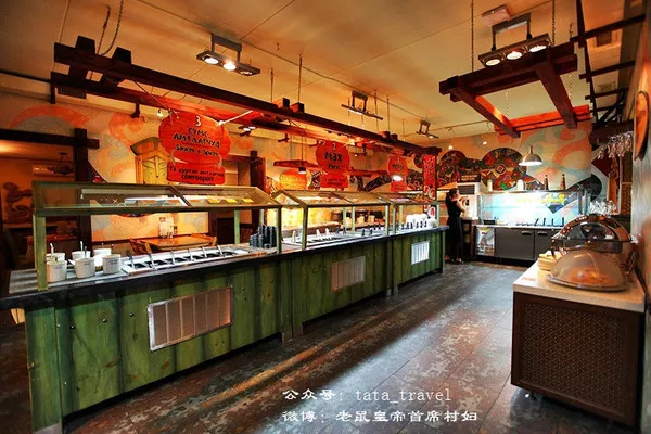 烏蘭巴托這家烤肉店氣質(zhì)相當(dāng)混搭:蒙古草原風(fēng)的壁飾、尼泊爾的燈罩、西式自助。齊活。