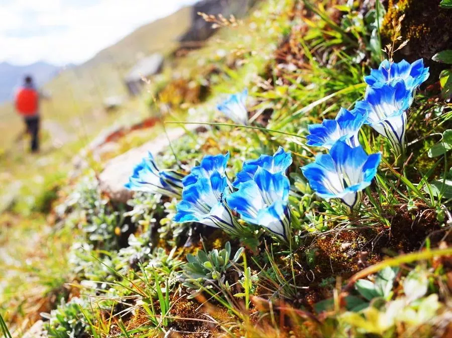 清晨早餐后車子從拉薩出發(fā),朝著太陽升起的方向行駛,爬上十幾公里的九曲十八彎的山路,看到山頂一大片紅墻白墻相間的藏式建筑,我就到了徒步的起點甘丹寺了!游覽寺廟后由專業(yè)領(lǐng)隊帶領(lǐng)沿著一條小路上山,這一天會走得比較辛苦,身體慢慢適應(yīng)在海拔4000多米的高地運動,一路攀爬,山路碎石嶙峋,把人壓扁在斑駁的黃草皮山上,坡上山花爛漫。到達黑布村,再向上走一個小時到達營地。