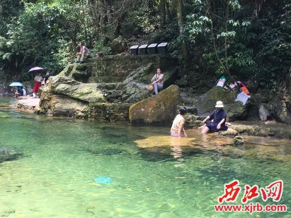 有游客不顧危險(xiǎn)在水潭里泡澡。 西江日?qǐng)?bào)記者 楊麗娟 攝