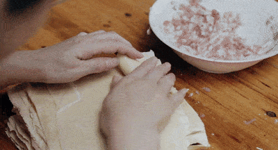 面結(jié)一口咬下去,一層一層的千張劃開,包裹著新鮮的豬肉 糜,散發(fā)出鮮香,在舌尖上碰撞出美味的火花,面結(jié)面的“靈魂”一下子就讓人感受到了。