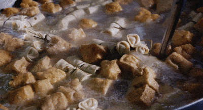把面結(jié)、豆腐泡放進(jìn)骨頭湯里煮,將骨湯的鮮味全部輸送其中,最后抄熟幾顆青菜,擺放一起,一碗面結(jié)面就完成了。