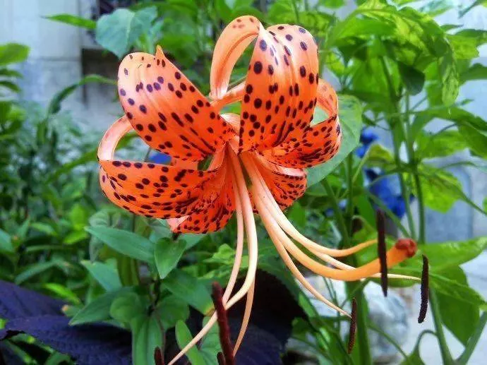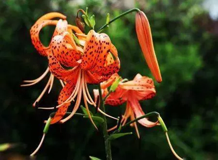 另外,卷丹百合又因花瓣上有紫黑色斑紋,很像虎背之花紋,故有“虎皮百合”之雅稱。其植株間有高達(dá)1.5米的,可稱“百合之冠”。