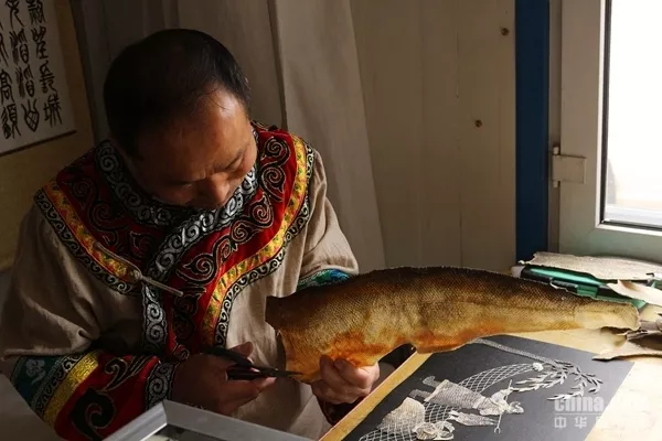 世人皆知赫哲族人的魚皮衣,卻不一定知道魚皮畫。她赫哲族特有的藝術(shù)品,赫哲族通過對(duì)魚皮的粘貼和鏤刻從不同角度表現(xiàn)了赫哲人的生活。而魚皮的粘貼和鏤刻則曾被稱無(wú)紙剪紙。赫哲魚皮畫其豐富的題材活靈活現(xiàn)的講述了世代赫哲人的生活、宗教、傳說(shuō)等等。在傳承人孫老師家里,也是他的工作室,十分有幸看到了這種凝聚了赫哲族人民的聰明才智和審美的藝術(shù)作品。