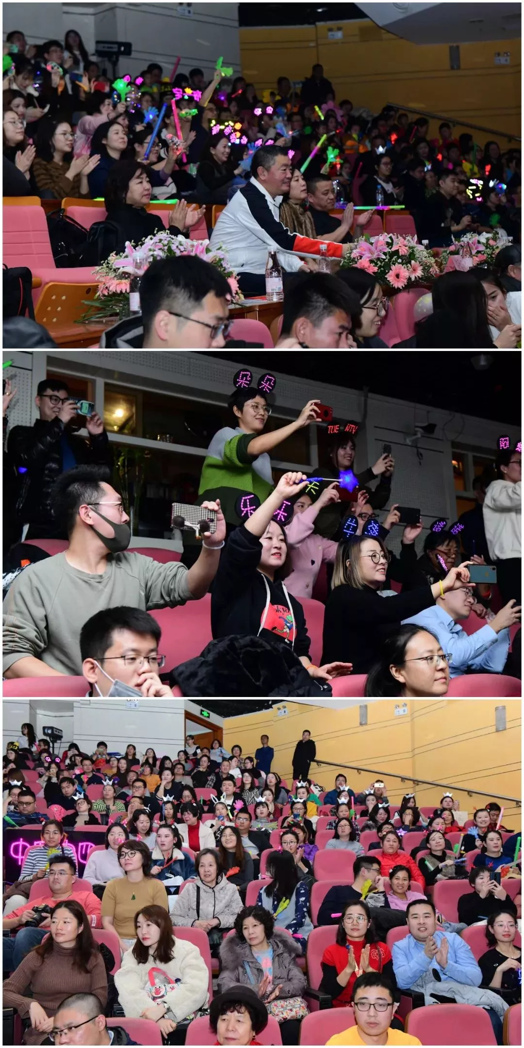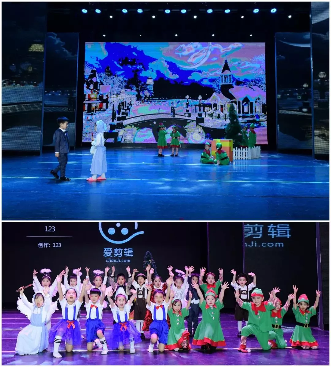 孩子們?cè)谖枧_(tái)上展示自己活潑自信的一面,將每一個(gè)角色用自己的理解與方式呈現(xiàn),臺(tái)下爸爸媽媽舉起手中的熒光棒給孩子們加油打氣,后臺(tái)中,小演員們開(kāi)心搞怪,十分歡樂(lè)。
