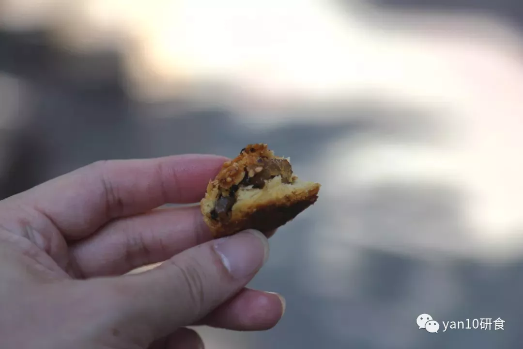 吃口是脆的,有點悶,里面還是有餡兒的,很有意思