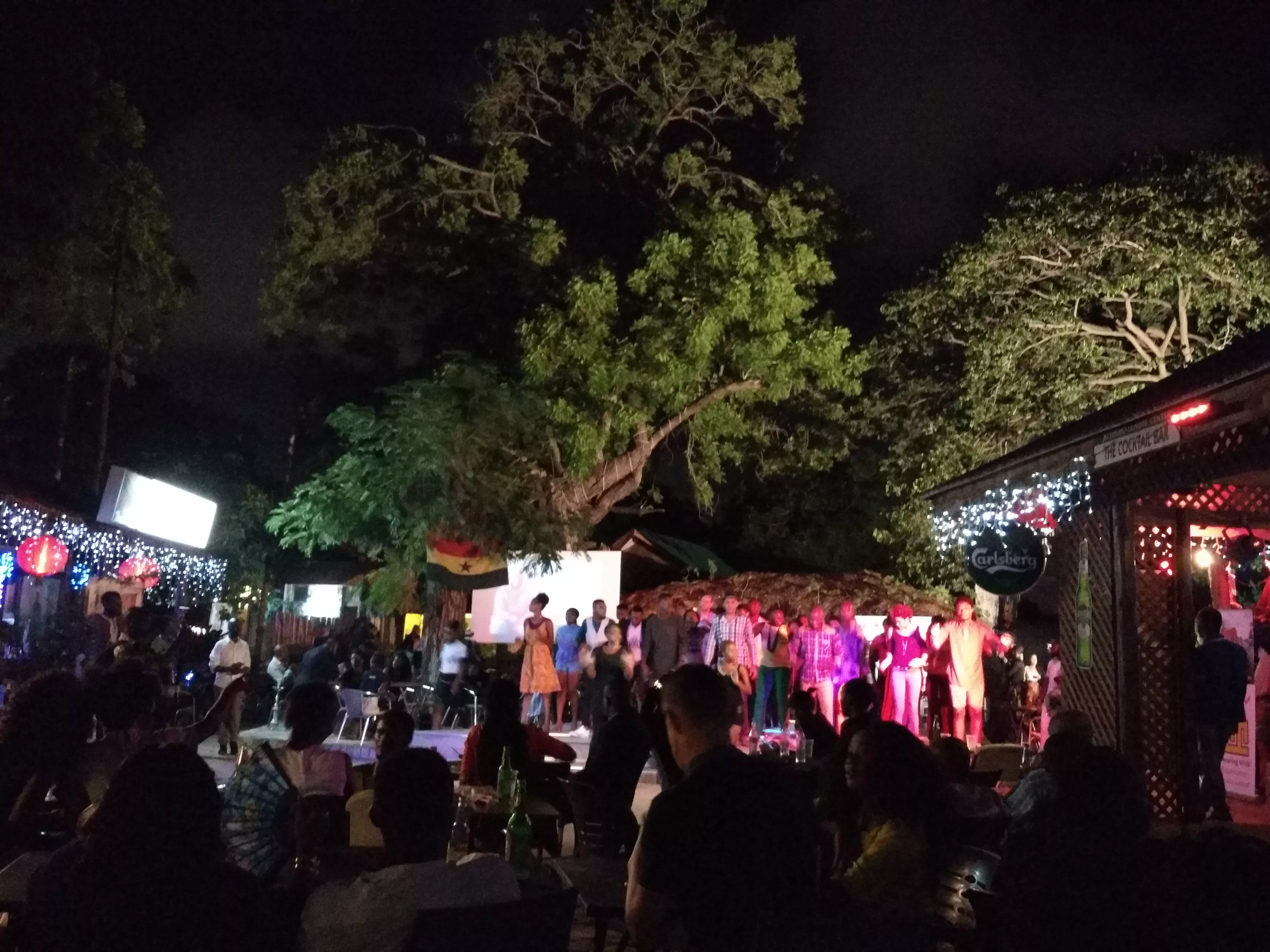 最顛覆我的是非洲人民的樂觀和享受生活的感覺,在阿克拉的酒吧,感受到與國內(nèi)酒吧最大的不同之處是這里的參與感非常高,不像是國內(nèi),大家只是坐著喝酒看演出,這里的人們則更加喜歡上臺跳舞。美酒+音樂,昏暗的燈光下,他們的牙齒則顯得格外白、格外刺眼,一眼望去滿是白白的牙齒,相配應的是他們幸福無比的笑容。