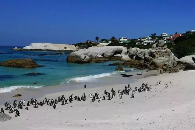 午餐后前往企鵝海灘游覽;企鵝灘位于開普敦東海岸西蒙鎮(zhèn),是印度洋上的小海灣。這里,沙灘、巖石和岸邊的小叢林是穴居動物企鵝理想的筑巢和棲息地。