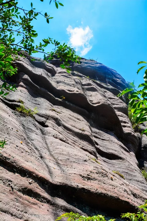 竹安寨——“天墻”,長(zhǎng)約1000米的單斜式墻狀山體,高約150米,上部寬20米-35米,橫看成墻,側(cè)看成峰,很有觀賞美學(xué)價(jià)值,是中國(guó)丹霞石壁中獨(dú)一無(wú)二的珍品。