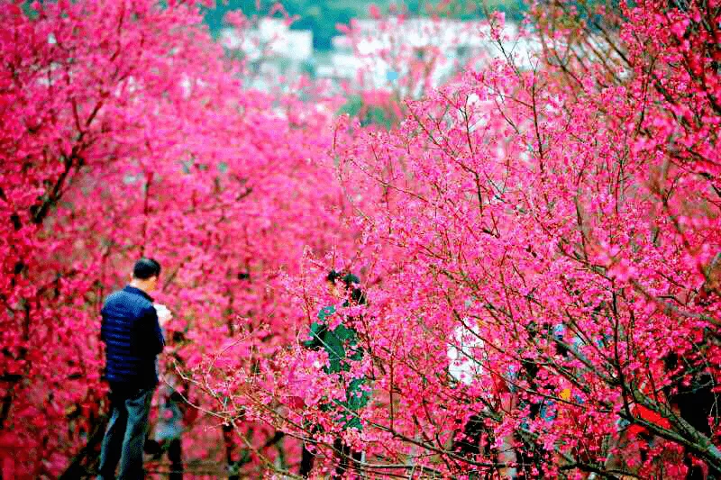 午餐(自理)后前往【大埠崗櫻花文旅小鎮(zhèn)】500畝、22萬株福建山櫻花、12萬株紅粉佳人,環(huán)繞著整座山。每年二月,櫻花園里櫻花盛開,暈染開了層層緋紅,當你乘坐小火車從粉紅色花海下穿梭而過時(小火車自理30元/人),就仿佛成為了一闋美艷的詩篇......