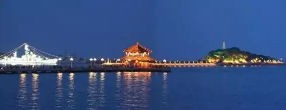 每當(dāng)夜幕降臨以后,小青島燈塔上的紅燈與棧橋上的燈光在碧波上浮動,燈影波光形成青島—景——“琴嶼飄燈”。