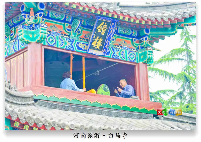 晨鐘暮鼓,時光流轉,萬千僧人的腳步在此駐足停留,翻開的歷史,窺探一角,哪一塊石板沒有故事。法相金身的佛像,繚繞的香煙,純潔的荷花池和古香古色的殿宇,歷經歲月洗禮的白馬,無不透著佛的聲音。大佛殿的東南角有一口明代鑄鐵鐘,“白馬鐘聲”乃洛陽八景之一,每當月白風清,晨曦初露之時,殿內撞鐘涌佛。正如老舍所言:中周原善土,白馬馱經來。野鶴聞初磐,明霞照古臺。