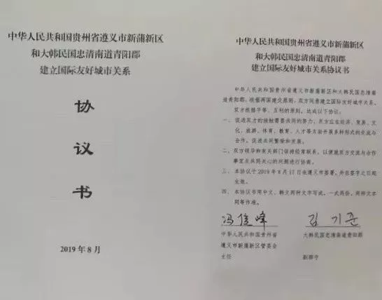 遵義市新蒲新區(qū)與韓國(guó)青陽(yáng)郡締結(jié)國(guó)際友好城市關(guān)系