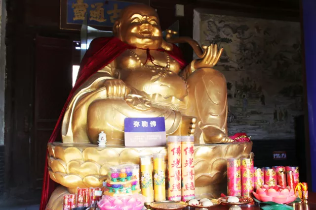 可這時大雄殿內(nèi)最西邊的釋迦牟尼像四周瑞彩閃耀、祥光繚繞,眾金兵見此場景頓時紛紛扔掉手中的兵刃,跪倒求拜。幾天后,“佛祖顯靈”的事悄悄地傳遍了金營,金兵們都認為“佛祖殿”是不能褻瀆的。