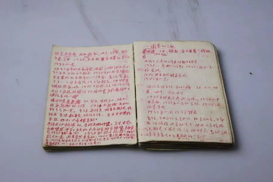 展廳里,馬仁興日記本上紅色的字跡仍清晰可見。