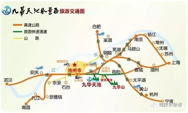 在池州汽車總站(汽車站、火車站、公交車站三站合一)搭乘池青九公交專線(池州車站到青陽九華山方向?qū)>€公交車)在318國道馬衙橋站牌下,往里步行800米即到,或乘出租車直接到九華天池景區(qū)游客中心下。