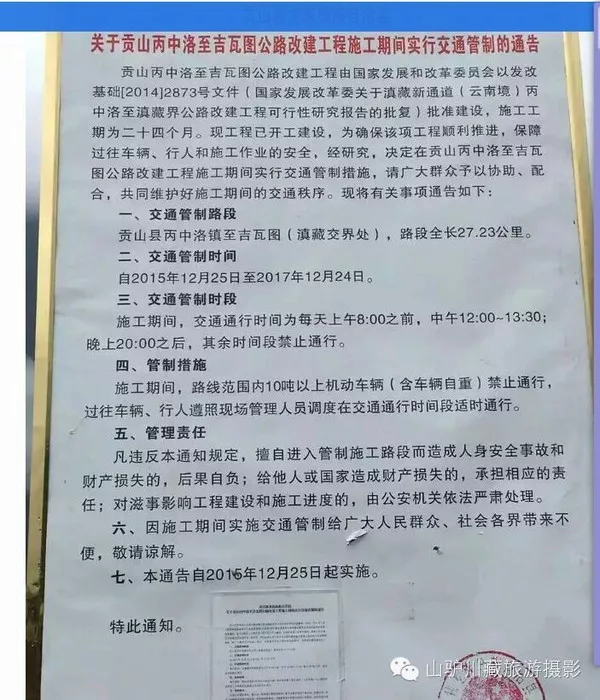 工程于2000年9月開(kāi)工修建,路基寬4.5米,屬山嶺重丘區(qū)四級(jí)路,是貢山縣”十五”時(shí)期交通開(kāi)展規(guī)劃中的”北上”項(xiàng)目,是滇西進(jìn)藏公路中的最后一段公路。同時(shí),也是繼國(guó)道214線后云南省通往西藏自治區(qū)的又一條重要通道。