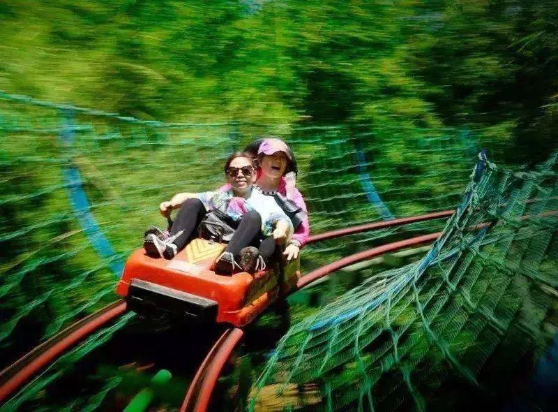 雙軌式滑道全長(zhǎng)780米,滑道依山就勢(shì)而建,跨九道彎,整體呈盤(pán)山巨龍狀。周邊綠樹(shù)成蔭,坐上飛車(chē)穿梭在叢林間,自由奔跑。全程速度由自己控制,和大自然來(lái)一次親密接觸吧!