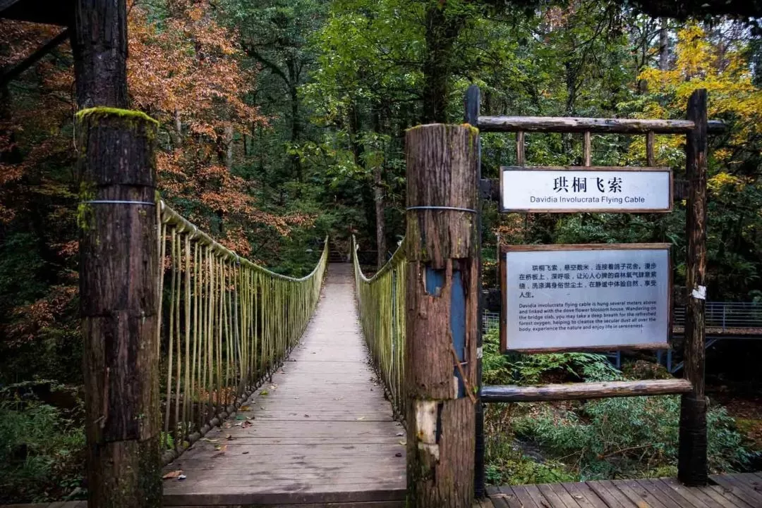 珙桐飛索,懸空數(shù)米,連接著鴿子花舍。漫步在橋班上,深呼吸,讓沁人心脾的森林氧氣肆意環(huán)繞,洗滌身上滿世塵土,在靜謐中體驗(yàn)自然,享受人生。