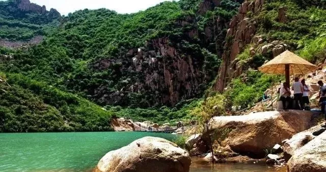 冰塘峪深潭碧水,從不同的角度看去呈現(xiàn)出不同的綠,這種綠酷似九寨溝水體的顏色。