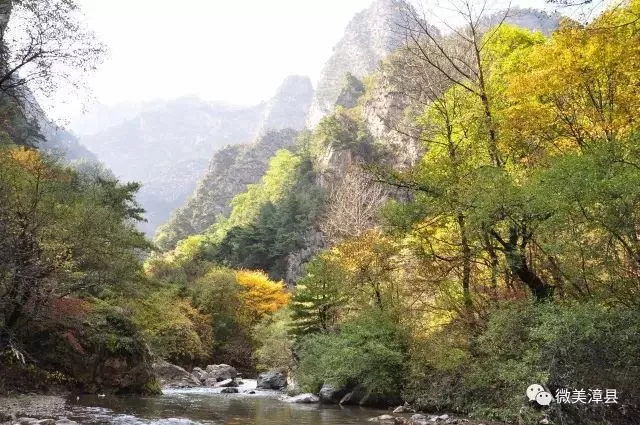 溪流兩邊奇山峻峰形態(tài)各異