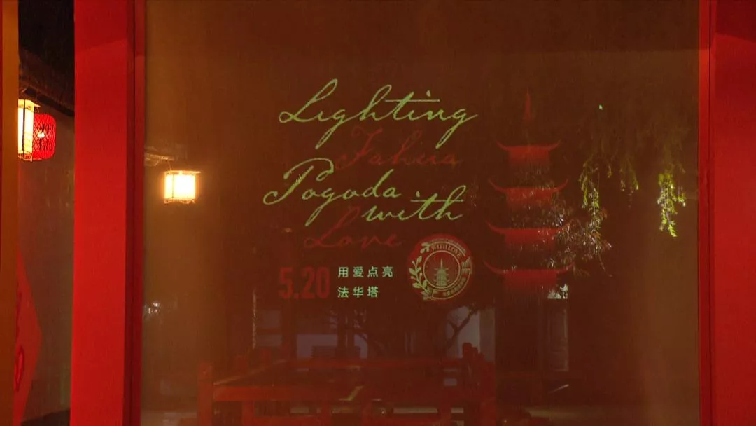 昨晚10點,法華塔前“愛的禮物盒”閃亮登場,紅金相間的邊框,加上LED燈和大屏幕,浪漫又奪目。該裝置高3.6米,內(nèi)部正上方配置了柔光燈,兩側(cè)則配備了兩盞暖光射燈,烘托520氣氛。