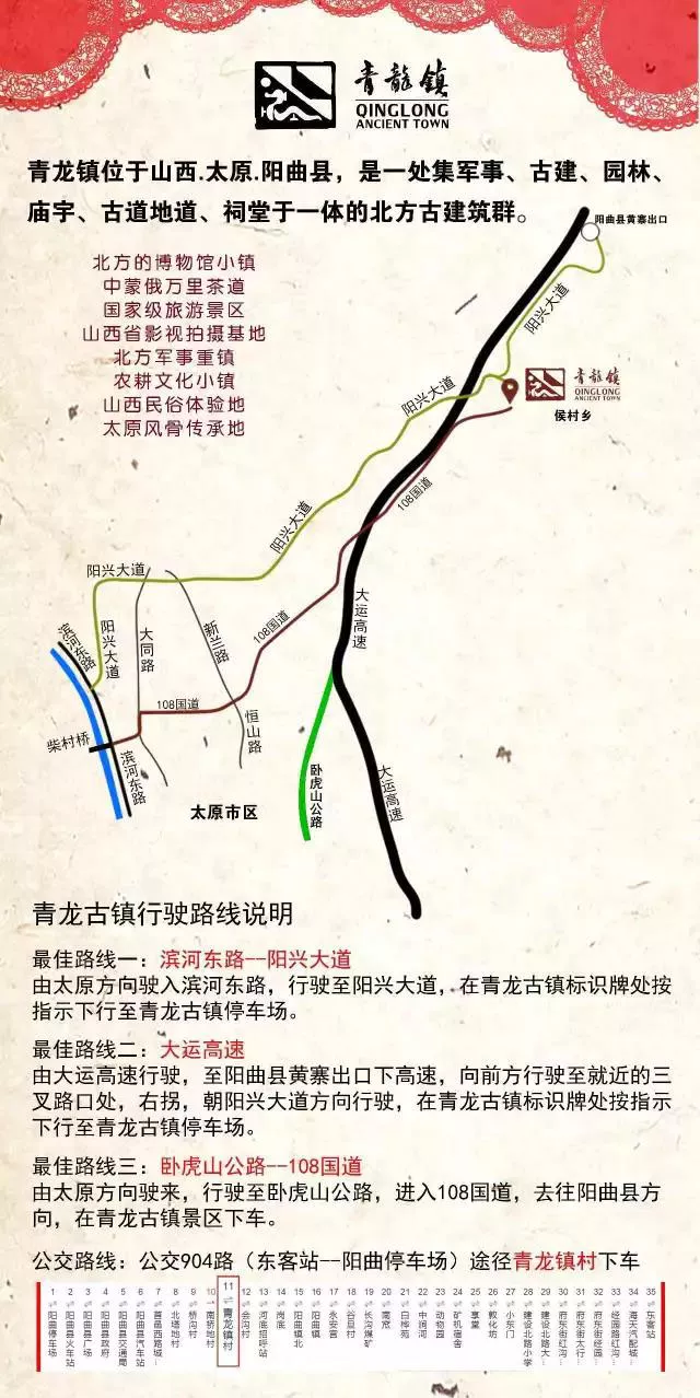 青龍古鎮(zhèn)位于山西省陽曲縣與尖草坪區(qū)相鄰的侯村鄉(xiāng),該村緊傍208國道、北同蒲鐵路和大運高速公路,交通極為便利。全村總面積235萬平方米,其中耕地面積3500畝,戶數(shù)500戶,人口1400人。
