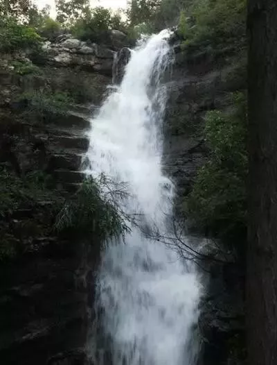 龍宮水廠北面300米處,有瀑布名曰“銀河瀑布”。銀河瀑布高30余米,從山崖上豎直跌落,好似由天上飛下。瀑布晶瑩如銀,氣勢(shì)恢宏,水霧和著冷風(fēng)實(shí)在是沁人心脾,耳目一新。