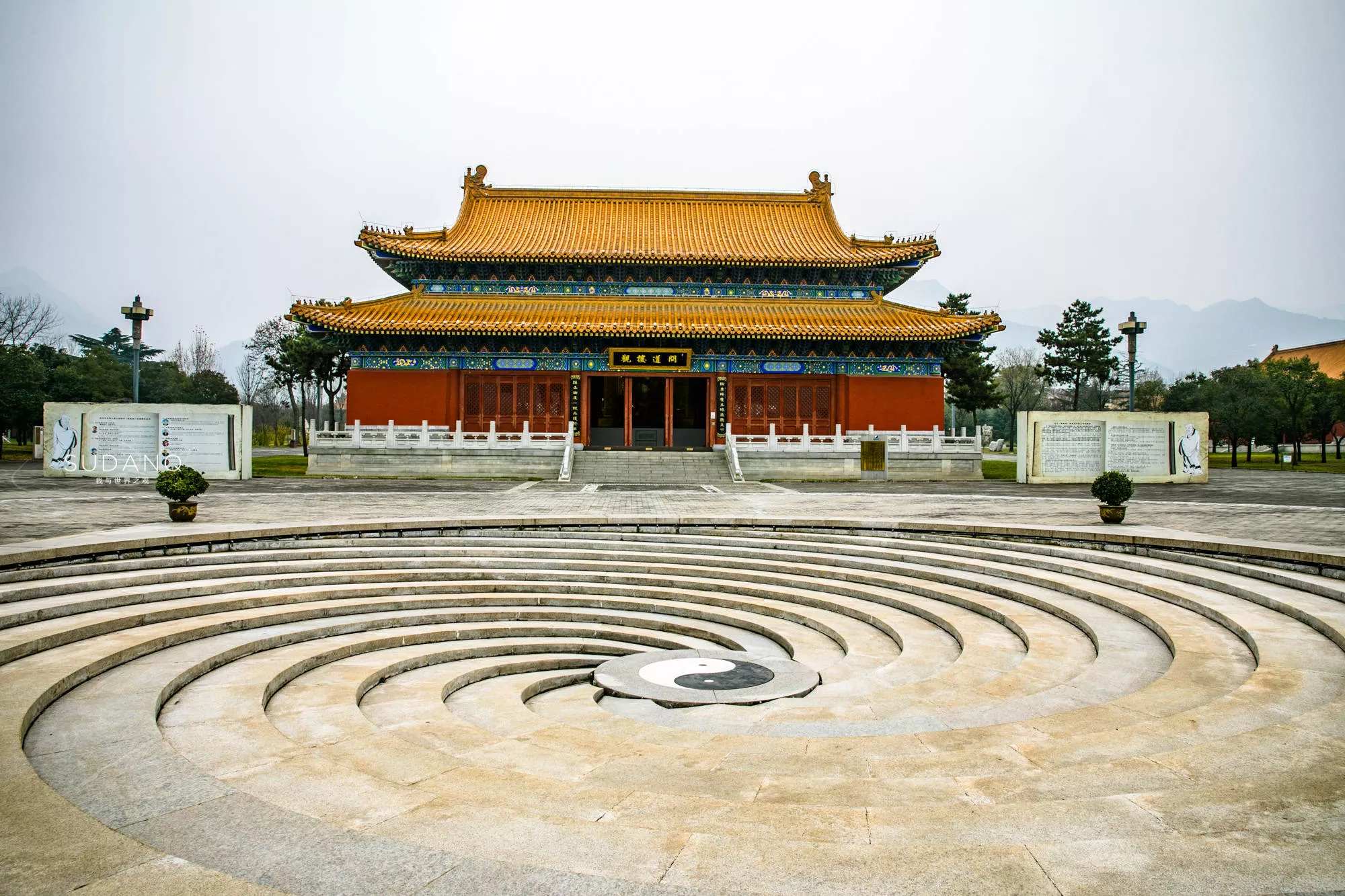 雖無法借助無人機(jī)進(jìn)行“俯視”,但依舊是可以看出該景區(qū)在規(guī)劃上借用了道教中的陰陽理念,以說經(jīng)臺(tái)為核心,以“經(jīng)一至九,九九道成”為文化內(nèi)容。