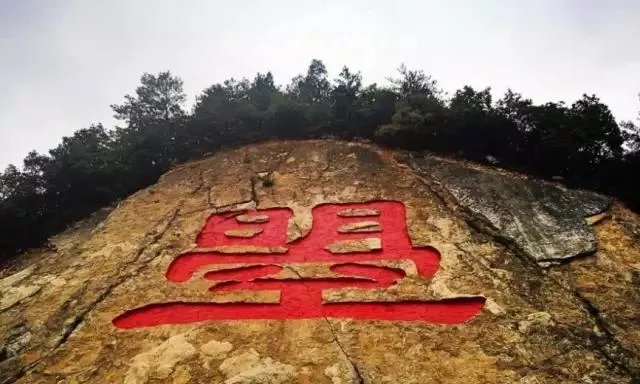 在天曌山半山腰上,有一處平臺(tái),名為曌望臺(tái),在曌望臺(tái)的絕壁巨大紅色隸書(shū)“曌”字?!皶住睘槲鋭t天為自己取的名,也是她所創(chuàng)文字之一,其意為“日月當(dāng)空,普照大地”。此山崖上“曌”字,為目前世界上最大的“曌”字。斑駁的石壁,圓潤(rùn)的文字,蒼翠的山峰,以示家鄉(xiāng)人對(duì)這位杰出的偉大女性紀(jì)念。