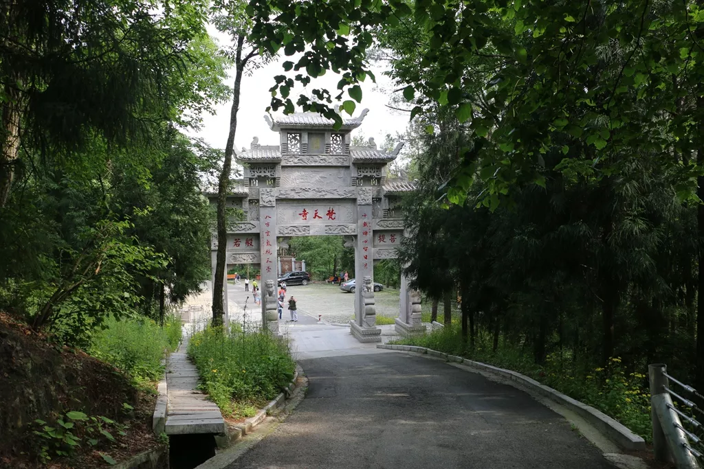 在臺(tái)面之上就是川北最古老的名剎梵天寺寺廟選擇一片開(kāi)闊地帶,依山而建,坐北朝南,占地百余畝,隱身于蒼松翠柏之中,昭示著廟宇文化的神秘與莊重。站在寺門(mén)南望,見(jiàn)眾多峰巒如蕓蕓眾生,盡呈膜拜之態(tài),傾聽(tīng)梵音佛語(yǔ)。遙想當(dāng)年武元華叩拜觀(guān)音,“真龍?zhí)旖怠?,其情其景已成為人們深深的追憶?/p>