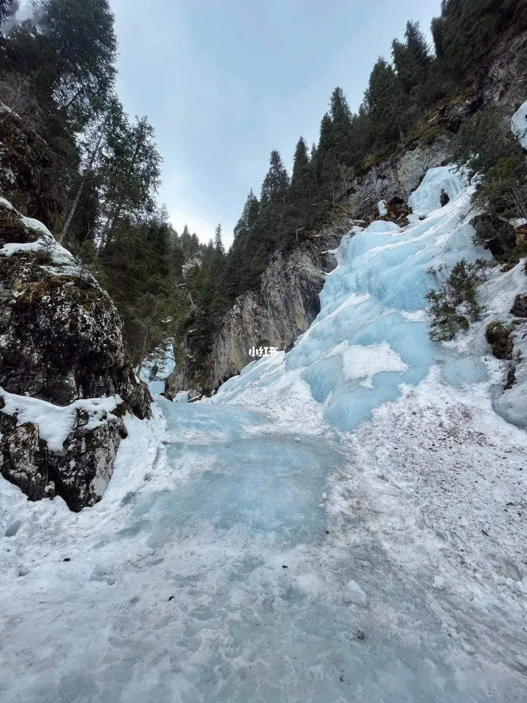 冬季時,瀑布會形成長達幾十米長的冰瀑,初夏,因峽谷狹長,兩壁懸崖高聳,和冰瀑形成局部小氣候,峽谷內(nèi)陰涼潮濕,冰瀑長廊一直到大約6月中旬才會化完。