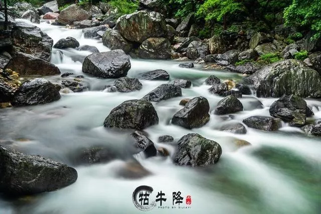 雨后的牯牛降,在我眼中是最美的。巖石被雨水沖刷的透亮,山泉奔流,這種大氣與坦蕩,不正是所謂的山水之氣么?