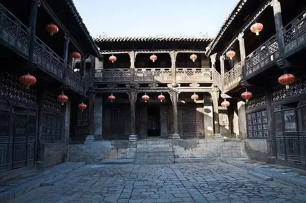 在每座古院落宅第的大門外,均有牌樓裝飾和石獅石鼓相鎮(zhèn)。院內(nèi)東、南、西、北四面為兩層樓閣式建筑。其中北房為高階臺(tái),寬走廊。每院四角又另有一小院,房屋兩間。這種建筑形制俗稱為“四大八小式”。