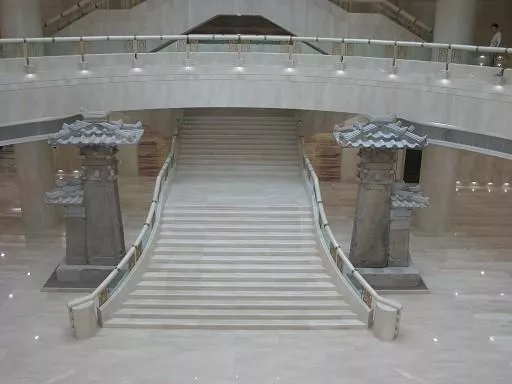 重慶中國(guó)三峽博物館的總體布局通過(guò)以東西走向的人民大禮堂對(duì)稱軸為主軸線,并以一個(gè)完形將人民廣場(chǎng)與博物館主體建筑聯(lián)系起來(lái),主軸線上人民大禮堂、人民廣場(chǎng)、博物館三位一體,一氣呵成,張馳收放灑脫自如,形成“三位一體”的四維效果(包含人群的行為運(yùn)動(dòng))。通過(guò)對(duì)完形的分解整合、高差變化、肌理對(duì)比,形成統(tǒng)一簡(jiǎn)約而又內(nèi)涵豐富的象征圖形。