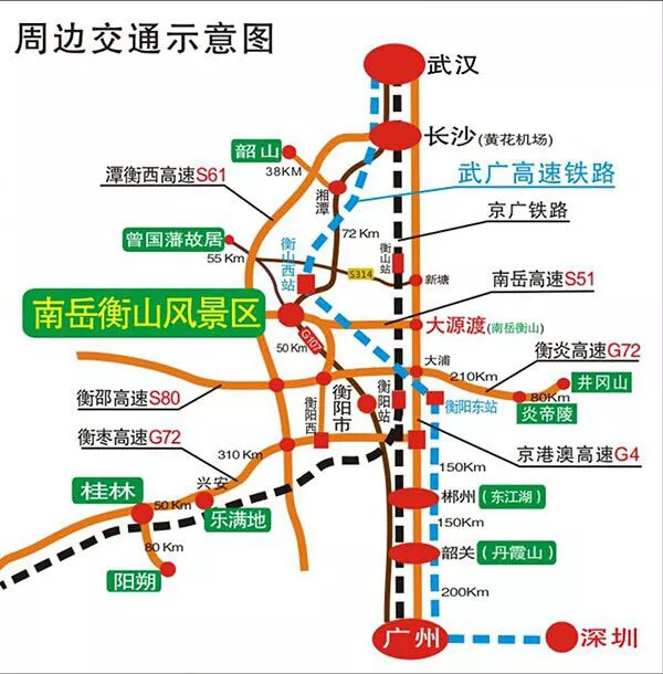 南岳衡山達(dá)南岳景區(qū):衡山西高鐵站。