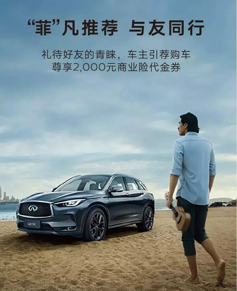 英菲車主推薦新客戶成功購買英菲尼迪:老客戶可獲 2000元商業(yè)險代金券。