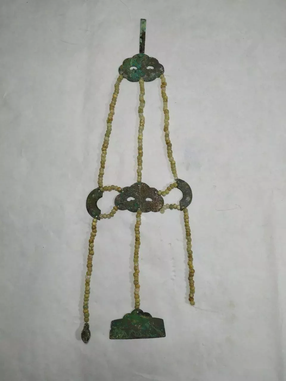 該銅組配一直被認(rèn)為是木箱上的銅構(gòu)件。近期省文物鑒定中心專家在結(jié)合歷史資料和其他館藏文物研究后,確定它是唐朝高官朝服上的配飾。