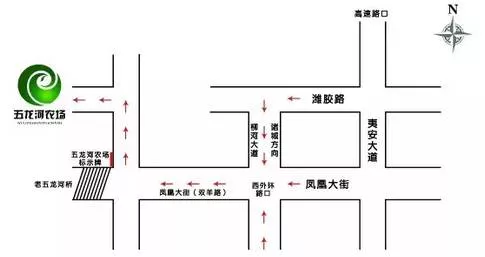 青銀高速(高密出口)駛出駛?cè)胍陌泊蟮馈蚰闲旭傊翞H膠路(澤安大道)——沿濰膠路(澤安大道)行駛至柳河大道(西外環(huán),諸城方向)——沿柳河大道(西外環(huán))南行至鳳凰大街——沿鳳凰大街西行過(guò)西外環(huán)路口三公里路北(五龍河農(nóng)場(chǎng)標(biāo)識(shí)牌處往北直行)。