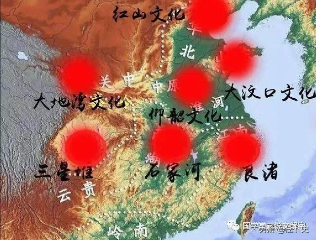 與賈湖裴李崗同時,西北秦安大地灣文化,河北內蒙有磁山興隆洼,江浙上山河姆渡,湖湘彭頭山,泰沂山周邊后李文化。天府之國四川還是空白,三星堆還早著呢,那得到商周時期。漢水以東地區(qū),也是空白。